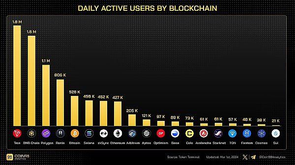 报告还指出,波场TRON网络上每日活跃用户数继续大幅领先于其它公链 ,超过180万。
