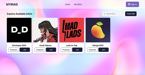 Myriad 构建在 Farcaster 协议之上,并使用 PSE(隐私和扩展探索)SDK 为用户提供无缝体验。我们使用 Semaphore(负责通过投票和提案所需的隐私和离线计算)来允许用户使用其 Farcaster ID 创建和参与 DAO。