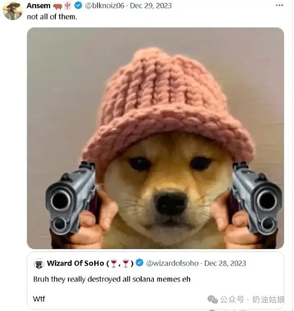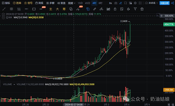 WIF自开盘以来一直保持上升趋势,没有出现大幅下跌。然而,去年底是Solana的meme季,出现了许多百倍币和千倍币,尤其是Solana的联合创始人Anatoly带头的"傻龙"涨幅超过上万倍,因此短暂的WIF拉伸并未引起重视。