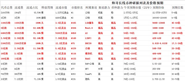 以下是帅哥长线币种的投研报告和预期价格(代币名称未截取)