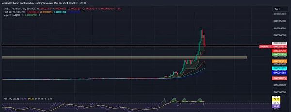 由于价格拒绝了每单位 0.000045 美元的水平,柴犬(SHIB)已经出现了下跌趋势。尽管 SHIB 价格跌破了 EMA20 趋势线,但随后由于买盘压力的激增而出现了反弹。