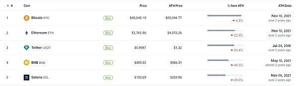 截至发稿,与比特币相比,以太坊仍远未达到其历史高点,这表明其价值快速升值的潜力。根据 CoinGecko 的数据,虽然比特币较 3 月 5 日达到的历史峰值仅落后 4.3%,但以太坊较 2021 年的记录落后了 20% 以上。