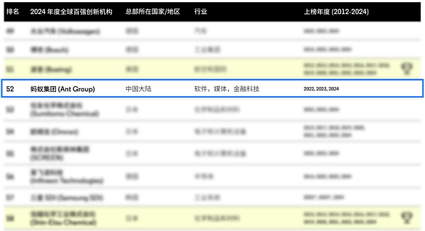 近日,蚂蚁集团连续第三次入选了科睿唯安发布的《全球百强创新机构》。