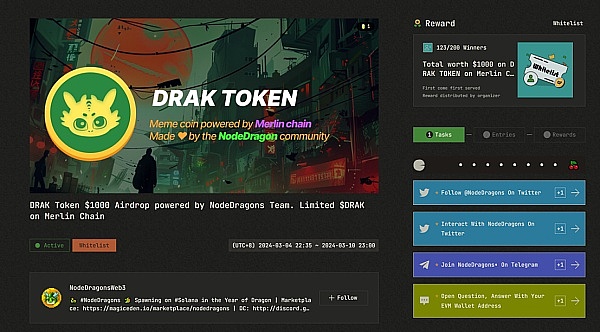 虽然$DRAK空投获取细则还未公布,但是可以知道,NFT的持有者是可以参与空投领取的,因此以下这个社区福利活动,还是值得参与一下的: