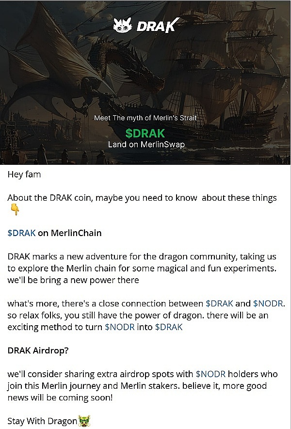 $DRAK将发布在MerlinChain上。它标志着龙社区的一次新冒险,带领我们探索梅林链,进行一些神奇而有趣的实验,我们将在那里获取新的力量!