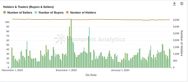 Footprint Analytics 最新的 NFT 数据显示,截至 2024 年 1 月 29 日,Milady Maker NFT的持有者数量已稳定在约 3,500 左右。当前持有者与供应的比例为 2.84。