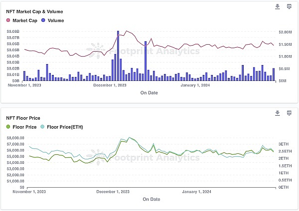Footprint Analytics NFT 数据显示,在过去 90 天里,Milady Maker NFT 系列的地板价和市值都出现了显著波动。