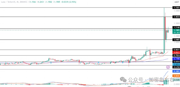 最近,LUNA代币在数小时内暴涨91.11%,随后经历了32.8%的回调。此后,价格一直在 1.0405 美元至 1.2140 美元之间的封闭区间内交易,表明价格走势有所降温。