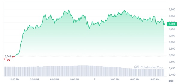 经过昨天的大幅回调,ETH价格再次展现出上涨的势头,涨幅超过12%。与此同时,其交易量也增长了超过57%。尽管存在空头的活动,但阻止ETH持续上涨的趋势是不可能的,因为其目标是建立一个新的历史最高价(ATH)。
