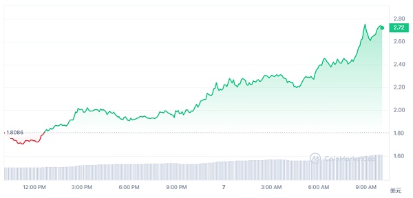 最近,FET持续刷新历史最高价(ATH),取得了连续的优异表现。截至撰写本文时,FET的价格为2.72美元,比大约7天前的价格高出62%。令人感兴趣的是,这种收益势头远未结束。