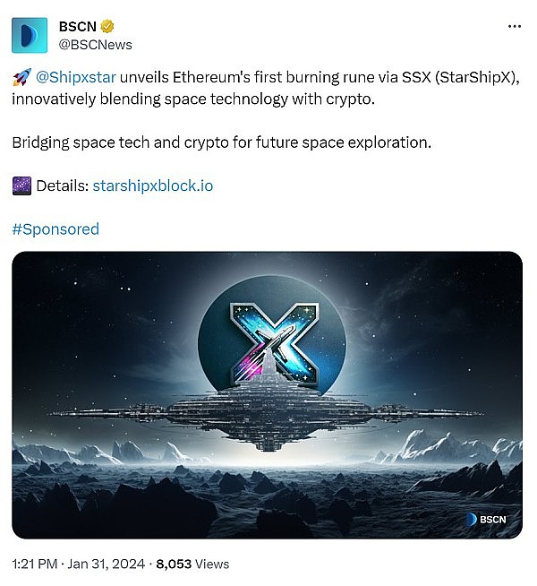 随着星舰发射的日益临近,SSX加密货币的即将上线也无疑将成为太空与加密货币的交汇点。这不仅是一次前所未有的冒险,更是太空与梦想共舞的奇妙时刻,将这段历史定义为2024年最具代表性的Meme币之一。在这个独特的时刻,让我们共同见证太空之门敞开,梦想与现实的辉煌交汇。