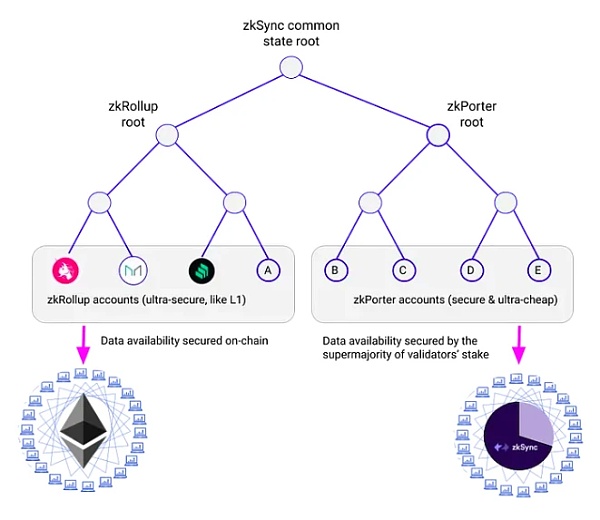 综合上述资讯,本轮针对zkSync 空投猜测的主要依据聚焦于zkPorter 之上,那么zkPorter 究竟是什么呢?为什么说zkPorter 的上线会与zkSync 的代币挂钩?