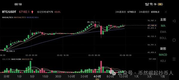 如图所示今日比特币行情分析,比特币4小时行情处于上轨附近震荡上行,附图所示处于是上轨道附近上行持续震荡回调运行,根据附图显示红色能量柱处于回调上行趋势,币价MACD以及BOLL持续震荡有继续持续回调上涨趋势,因为当前币价仍旧处于震有向上走势运行,所以目前短线来看操作会有一波上涨趋势,当前币价会在回调一波在操作低多一波,个人操作建议综合来看指标比特币短线币价低多为主,今日买入建议操作买入低多一波,个人建议,仅供参考。