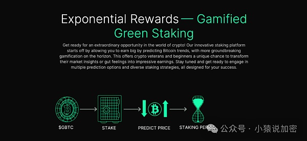 与比特币的挖矿模式相反,绿色比特币建立在以太坊上,并通过质押分配其代币奖励,这是一种比挖矿更环保的替代方案。然而,环保远不是绿色比特币的唯一优势。由于绿色比特币是以太坊原生的,因此该项目拥有智能合约功能,将其开放给许多不同的用例。其基石功能是“预测收益”,这是一种新颖的机制,邀请用户猜测第二天比特币的价格会上涨还是下跌。获胜者可以获得高达 100% 的奖金,这使得该功能非常受欢迎,并增强了 Green Bitcoin 的社区参与潜力。