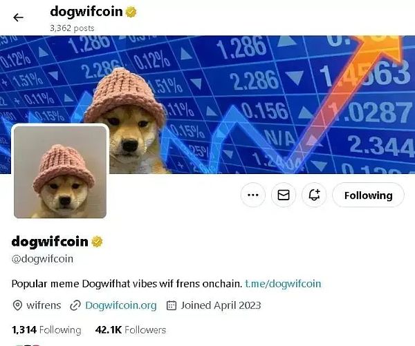 观察WIF的价格走势,自去年12月中下旬开始呈现上涨趋势,而官方推特账号也是在这段时间内首次亮相。