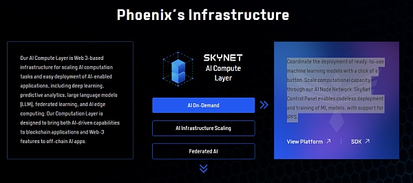 Phoenix 的 AI 计算层是一个基于 Web 3 的基础设施,专为扩展 AI 计算任务和轻松部署 AI 启用的应用而设计,包括深度学习、预测分析、大型语言模型(LLM)、联邦学习和 AI 边缘计算。