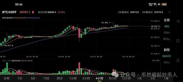 如图所示今日比特币行情分析,比特币4小时行情处于中轨附近震荡上行,附图所示处于是中轨道附近上行持续震荡回调运行,根据附图显示红色能量柱处于回调上行趋势,币价MACD以及BOLL持续震荡有继续持续回调上涨趋势,因为当前币价仍旧处于震有向上走势运行,所以目前短线来看操作会有一波上涨趋势,当前币价会在回调一波在操作低多一波,个人操作建议综合来看指标比特币短线币价低多为主,今日买入建议操作买入低多一波,个人建议,仅供参考。