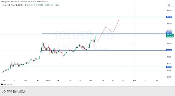 加密货币目前正处于充满希望的上升道路上。市场观察人士表示,维持这种积极趋势可能会让 Solana 在短期内瞄准 160 美元的阻力位。其价格的持续上涨也表明其有可能达到200美元大关,表明其市场地位大幅复苏。