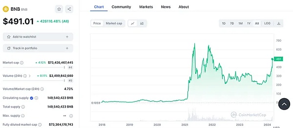 为纪念这一活动,币安还将针对所有日元现货交易对开展零手续费交易促销活动。2024年3月12日至4月11日期间,用户将能够通过此活动享受免费购买。这些新的交易对的推出是为了应对 BNB 日益增长的受欢迎程度和需求。此外,BNB 价格在过去 24 小时内上涨 4.1% 后已升至 490 美元。