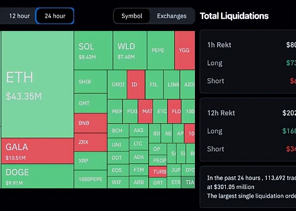 过去24 小时全网爆仓3 亿美元