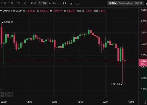 以太坊一度跌破3800 美元