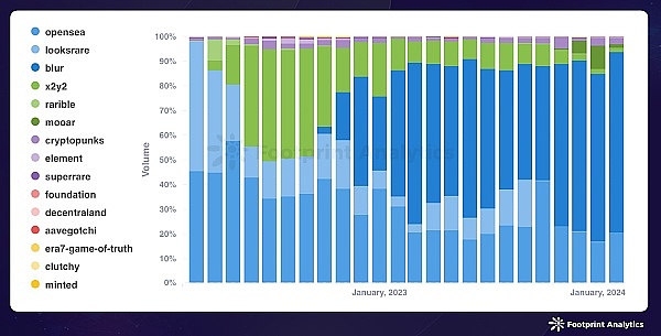 数据来源:NFT 交易市场月交易量占比 - Footprint Analytics