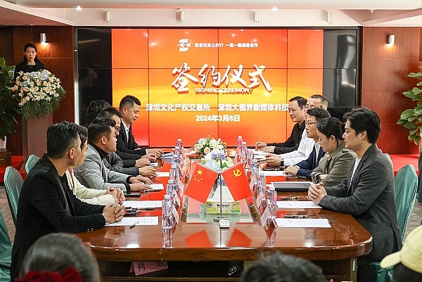 2024年3月8日,大视界国际文体产业集团董事长吴啸,大视界新媒体科技CEO莫壹程,一米科技集团董事长汪真庭等领导一行到访深圳文化产权交易所。深圳文化产权交易所副总经理季伟灵,深圳文化产权交易所融合运营中心总监黄晓丹,影视音像要素运营服务中心总经理施李刚及相关负责人员出席签约仪式。