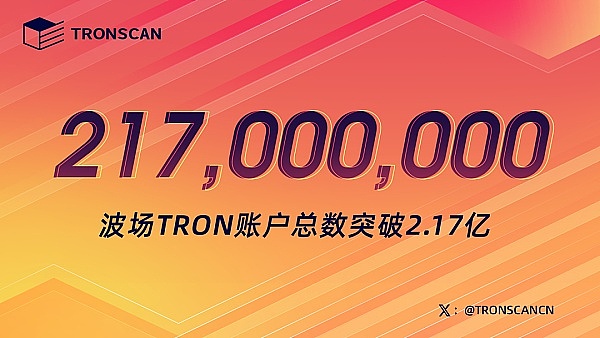 区块链浏览器TRONSCAN最新数据显示,截至2024年3月11日,波场TRON账户总数达到217,023,626,正式突破2.17亿。