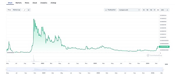 Dogelon Mars 是一个老牌的模因币,以埃隆·马斯克为蓝本。它与马斯克通过 SpaceX 让人类登陆火星的愿景产生了特别共鸣。它是在没有实际用例的情况下启动的。开发商通过实施成功的游击营销策略来弥补这一点。他们已将 50% 的 $ELON 发送给以太坊创始人 Vitalik Buterin。在代币发布后的两个月内,Buterin 将他的整个 ELON 堆栈捐赠给了玛士撒拉基金会,这是一家致力于延长寿命和长寿研究的非营利性医疗慈善机构。这帮助了 Dogelon Mars 在市场上获得了巨大的吸引力。