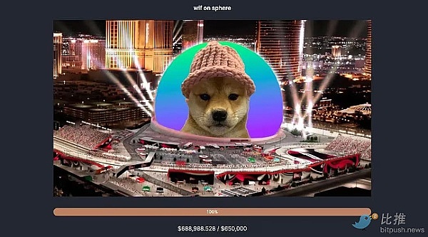 Dogwifhat(WIF)自去年年底推出以来一炮而红,继狗狗币(DOGE)、柴犬(SHIB)、Bonk等代币之后,WIF成为本轮市场周期中最受欢迎的meme币之一。该社区今日宣布其“sphere wif hat”计划已成功筹集到超过 67万美元,将在美国拉斯维加斯的新地标建筑 MSG Sphere上投放广告。