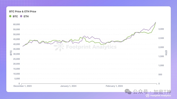 二月份加密货币市场出现了显著上涨,得益于多重因素的共同推动。其中,美国现货比特币ETF吸引了高达60亿美元的资金流入,显示出投资者对加密货币作为有效价值储存手段的信心。此外,市场对3月份以太坊坎昆升级和4月份比特币减半事件的预期也进一步推高了价格。这些因素共同为加密货币市场的上涨提供了有力支撑。