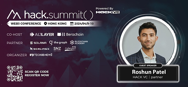 知名web3风险投资机构Hack VC的四位合伙人——Alex Pack、Ed Roman、Roshun Patel和Rodney Yesep将亲临hack.summit()2024亚洲区块链开发者大会,这一盛事将于2024年4月9日至10日在香港数码港举行。