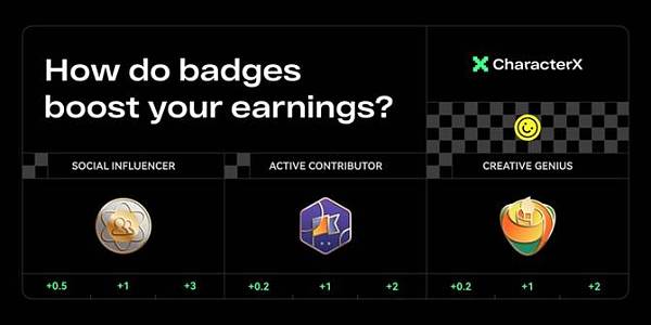 CharacterX 引入语音、图片、3D、AR等多感官技术,帮助用户打造更具真实感的 AI 生命,并以 ERC-6551 的 NFT 形式保存,NFT 非同质化独一无二的特性与 AI 角色的定制化需求完美契合。通过角色互动、陌生人匹配、社群等功能全方位构建社交网络,加深用户的沉浸式体验,全方位为用户提供情绪价值。CharacterX 已经发布支持 iOS、Android 和 Web 端的 dApp,用户可以自由选择客户端,并随时使用 CharacterX。赚取 CXT 积分并获得空杸目前,CharacterX 正在进行积分空杸活动,将社区的价值反馈给社区。用户可以通过三种途径获得积分。1、在 CharacterX APP 中获得 CXT 积分这部分用户积分包含:主动积分 x 加速器 + 被动积分在 CharacterX 中保持活跃、创建角色、邀请朋友和发展团队来赚取 CXT 主动积分,被动积分是用户通过团队和 AI 角色积累的积分。CharacterX 通过徽章系统,激励用户通过探索 App 功能获得三种类型的徽章:社交达人、活跃贡献者和创意天才。每种徽章对应不同类型的任务。创建角色、邀请好友、每天登录都可以帮助徽章。每个徽章都有三个级别,级别越高,加速器提升越强,获得的 CXT 积分就越多。