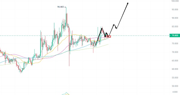 1:ordi 现报价 79.8u 可以先上个头仓,下方补仓位放在75下方,目标100u以上! 现货短 中线持有!