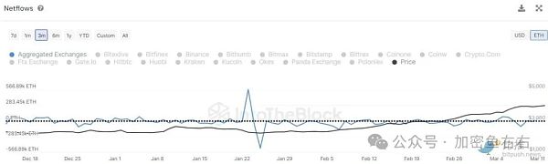 IntoTheBlock 的数据显示,以太坊的 Netflow 指标显著上升,交易量达到 8,529,000 ETH。这表明以太坊流入交易所的数量超过了流出量,导致交易平台的储备不断增加。暗示了价格即将下调的可能性。