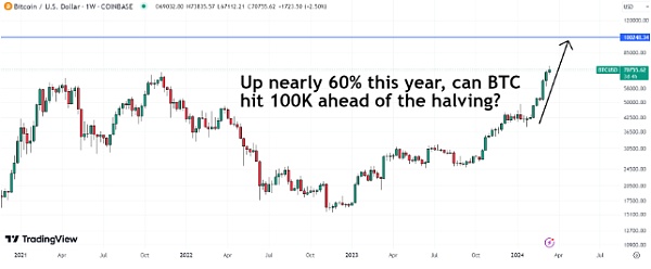 在4月份的减半之前,比特币有望升至10万美元。