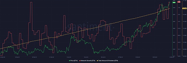 ETH 的网络增长也在增长,表明新地址继续对 ETH 表现出兴趣。与此同时,积累 ETH 的持有者总数也激增。