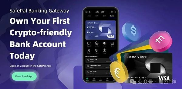 Cointelegraph 最近报道了 Web3 银行协议 Fiat24 与 Safepal DApp 钱包的战略合作:Fiat24 为 Safepal DApp 钱包推出了内置的 Web3 银行网关和虚拟加密支付 Visa 卡,以提升 DApp 钱包的易用性,并进一步实现与现实世界的互动。