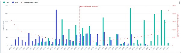与此同时,名义价值 12.4 亿美元的332,094 份 ETH 期权即将到期,看跌期权比率为 0.69。最大痛点是 3,550 美元。交易者特别看好以太坊,但成功地在最大痛点之上获得了利润。ETH 价格在跌至 24 小时低点 3,656 后上涨至 3,748 美元。