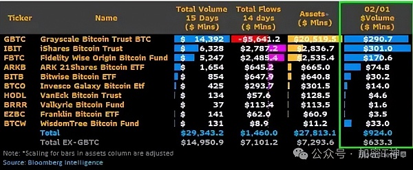 在ETF领域,比特币ETF已经显示出对一个抵制中央化稀释的去中心化资产的高需求。在过去的15天里,它们总共产生了2930亿美元的交易量,而来自Grayscale比特币信托基金(GBTC)的抛压达到了1490亿美元。