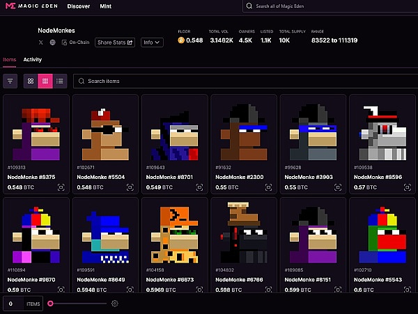 几乎所有 NFT 玩家们也都在等待 NodeMonkes 创出比特币本位计价的历史新高。历史第一个单价突破 1 比特币的比特币 NFT 系列,NodeMonkes 在大家的期待中,几乎已经板上钉钉,注定将要发生。