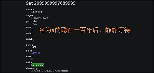 认真观察聪的表示方式不难发现一些有趣的事情。名为 0 与 a 的聪在时空两端遥相呼应,共同串联起了这一横跨 2100 万亿枚,历时一百三十多年比特币挖矿的恢弘史诗…