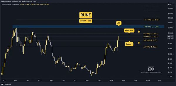 RUNE自底部上涨了14倍。如果您还没有收回您的本金,那么当价格接近20美元的历史最高价时,您肯定应该这样做。RUNE完全可以进一步上涨并创下新纪录。到那时,您的初始资本应该已经全部出完,并获得了一些利润。剩下的您可以在比特币达到顶峰后出售。
