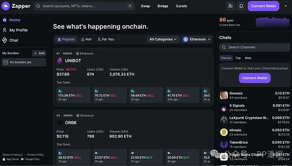 Zapper将区块链转化为社交媒体平台,帮助你轻松浏览流行的DeFi应用程序和代币、资深DAO和NFT集合。