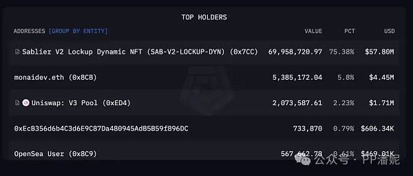 Arkham的另一项强大功能是能够识别代币的顶级持有者,深入了解他们是否是经验丰富的链上行为者(可通过使用以太坊名称服务域名(ENS)或作为OpenSea用户的活动进行识别),或者识别它们是否只是一次性的钱包。