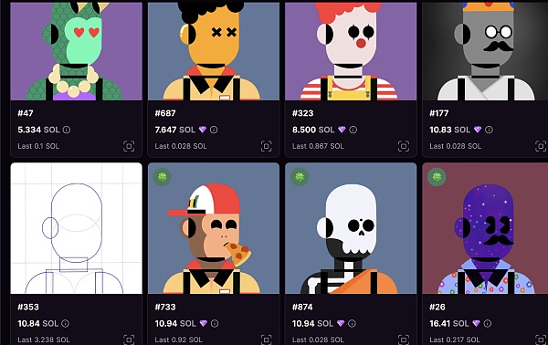 该系列的诞生目标是在 Solana 上创建一个以原创艺术为特色的社区。在magic eden上有483.2个sol的成交量。目前深受solana上的OG喜爱。