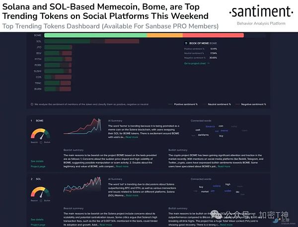 近两天最受关注的代币是Solana(SOL)和基于Solana构建的meme代币The Book of Meme(BOME)。