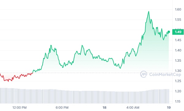Jupiter 是在 Solana 区块链上运行的去中心化交易所。该代币的代币价格显着上涨。在过去的 24 小时内,JUP 上涨了 15.55%,同时市值也出现了类似的增长。