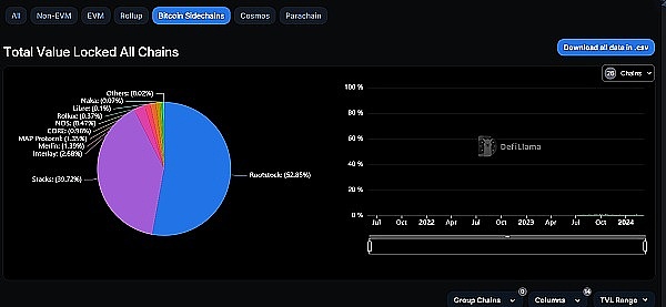 Defillama:https://defillama.com/chains/Bitcoin%20Sidechains