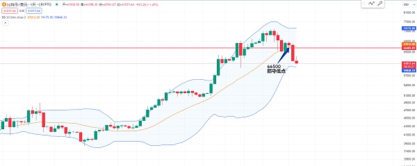 因为我们可以观察一下从高点到低点 如果是把59000的这个低点给跌破 那现在距离这个59000也没有多少的空间了 到这个位置大约也是接近20%的下跌